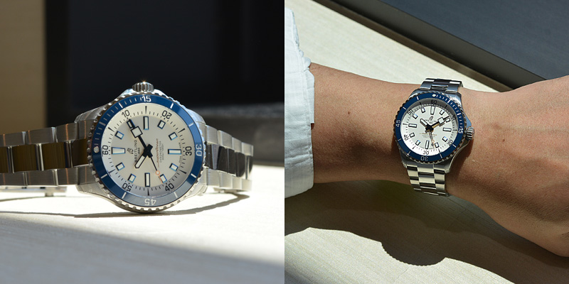 日照時間も段々と長くなり、夏が近づいてまいりました。腕元で程よく輝きを魅せるブライトリングより、ダイバーズウォッチをご紹介いたします。
