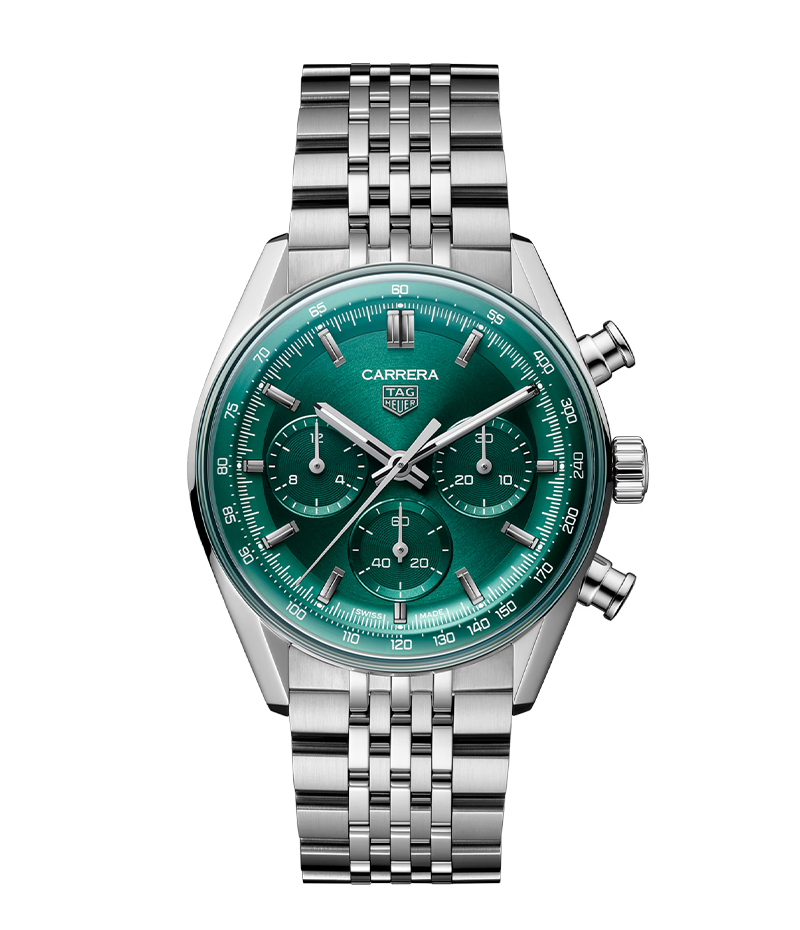 ステンレススティール製のビーズオブライス7連ブレスレットが、しなやかな着用感と洗練された気品を両立。ラグの裏側には、成功と幸運のシンボルであるビクトリーリースが刻印され、タグ・ホイヤー カレラのスタイルとパフォーマンスをモダンに表現したこのタイムピースを仕上げています。