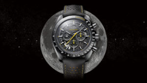 この時計は、ブラックにイエローのステッチが施された、ハニカム模様のスピードマスター ウォッチボックスに収められています。特別仕様のボックスには、ブラック&イエローのストライプのNATOストラップおよびストラップ交換ツールも含まれています。