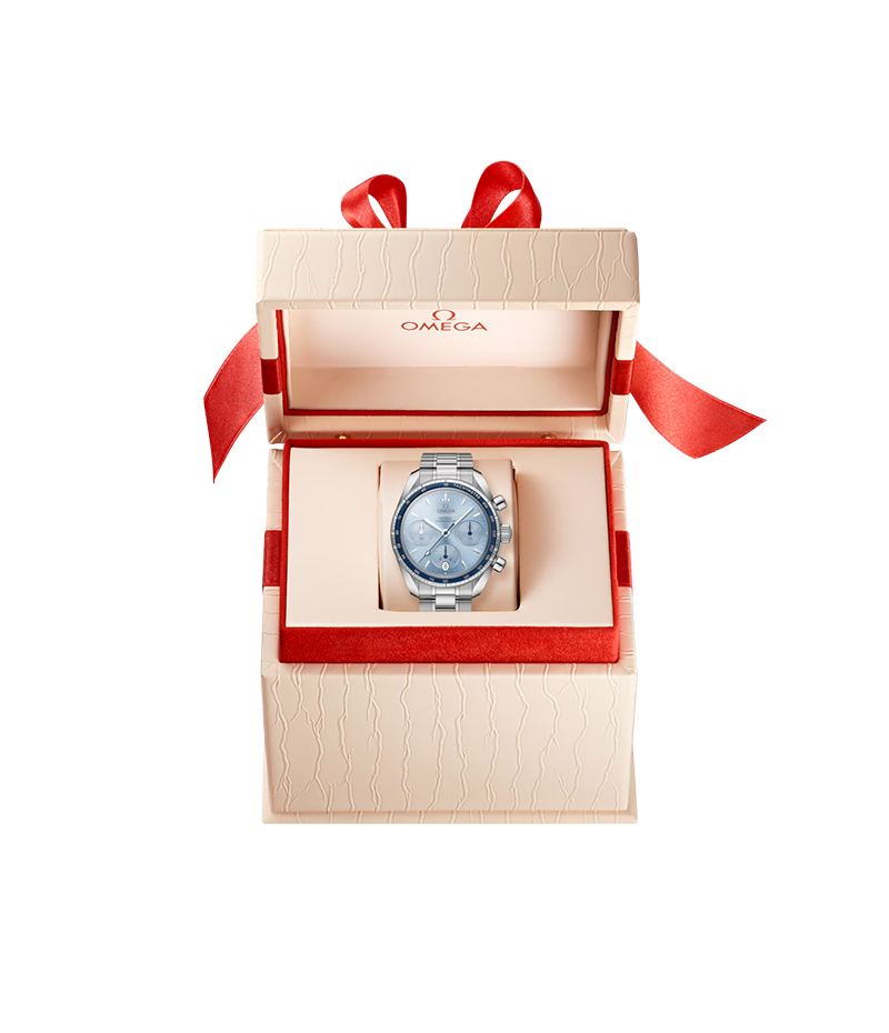 「スピードマスター 38」は、シンプルさ、サイズ感、カラーを大切にして生まれたモデルです。最も有名なクロノグラフとしてのルックスと伝統もしっかりと守られています。