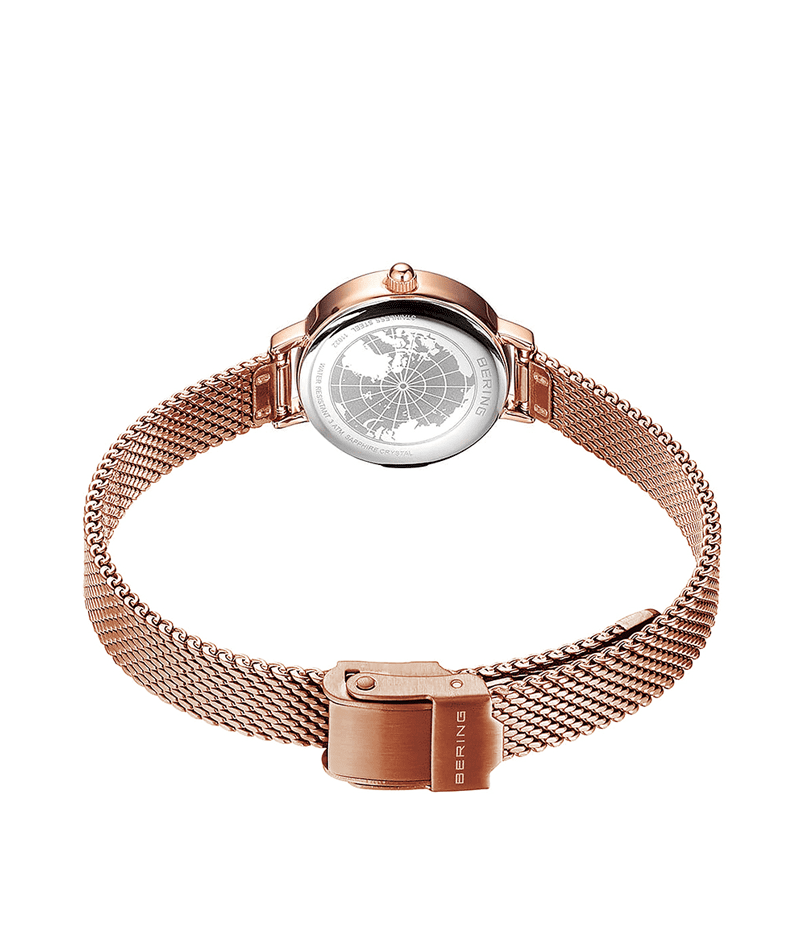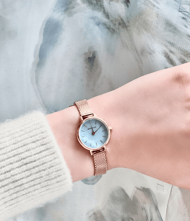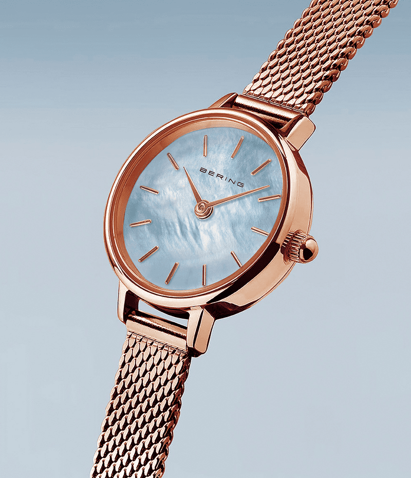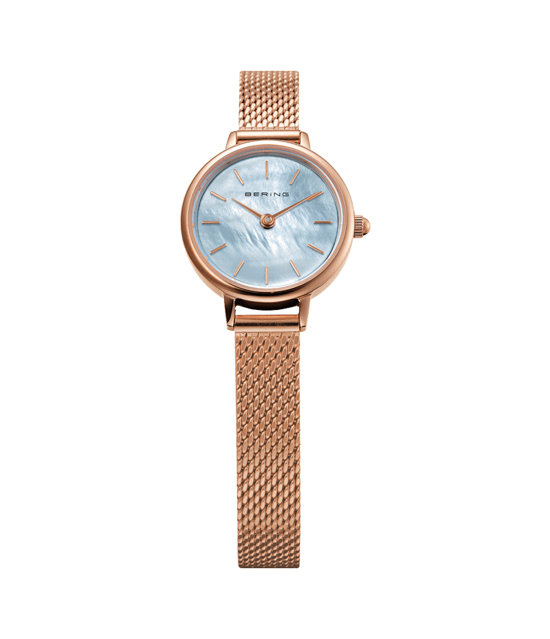 BERINGの中でも特に小さな22mmのケースに、幅8mmの細く繊細なストラップを組み合わせました。