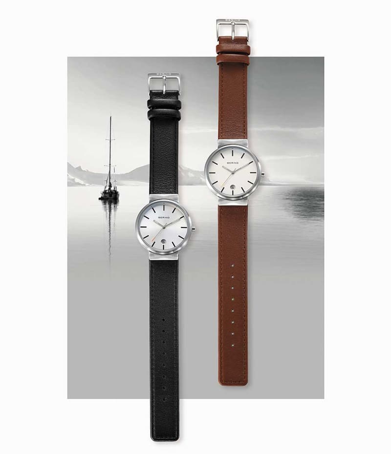 3針の日付表示があるオーソドックスな時計ですが、北欧の家具の様にどこかほっとできるような優しいデザインの時計です。