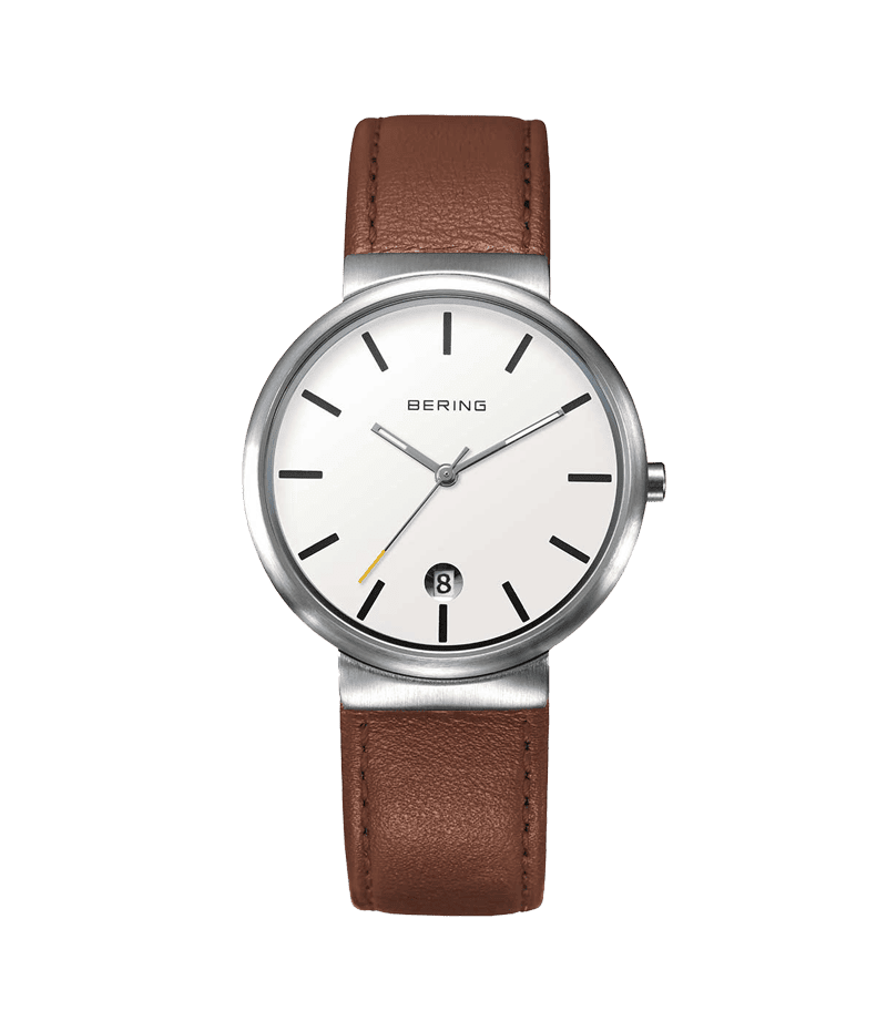 3針の日付表示があるオーソドックスな時計ですが、北欧の家具の様にどこかほっとできるような優しいデザインの時計です。