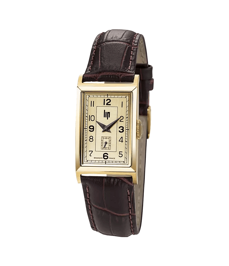 1910~30年代にパリを中心に栄えた装飾様式「アールデコ」の雰囲気を纏ったT18は、平たいリューズや2トーンに彩られた文字盤、直線的なデザインなどが特徴のモデルです。1939-45年の第2次世界大戦を前に自社キャリバーを搭載した「Type 18」を製造していたLIP社が戦火を避けて工場をフランス中心部に移転し、戦後再び創業地であるブザンソンに戻り再稼働した後に登場したモデルです。
