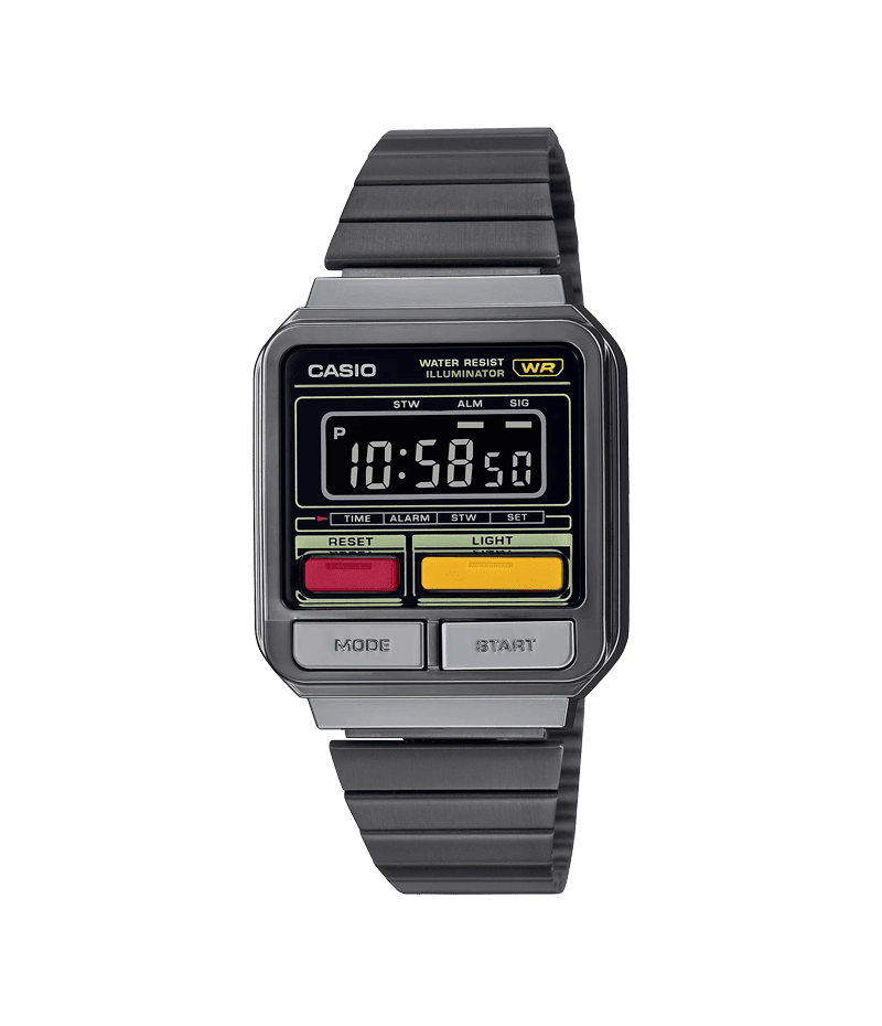 カシオが1980年代に展開していた「マルチカラーデザイン」をモチーフにした、レトロでPOPなデジタルウオッチです。