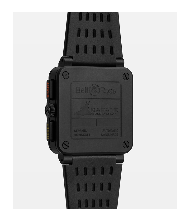 「BR-03 Chrono Rafale Solo Display」は、フランス航空宇宙軍の公式デモンストレーション ユニットである「ラファール・ソロ・ディスプレイ」の卓越したパフォーマンスに敬意を表しています。このモデルはBell & Rossと航空の世界との強い絆を具現化しています。