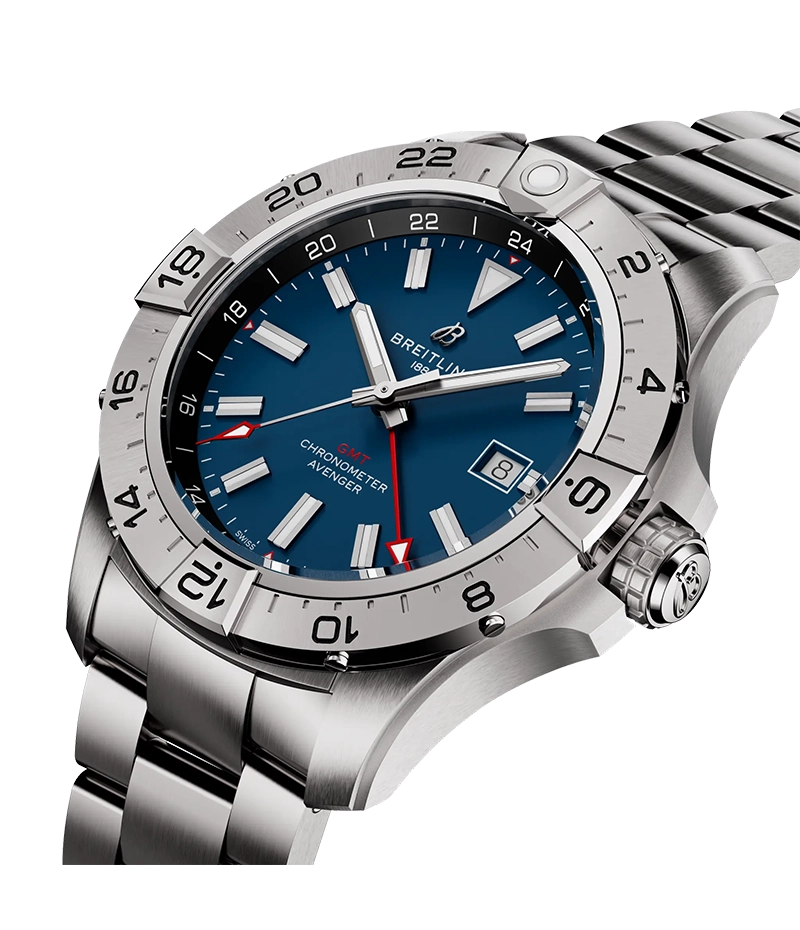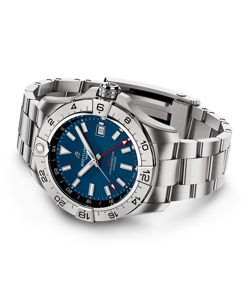 パイロットのみならず、頻繁に飛行機を利用する人々にも求められるのがこのモデルです。赤いGMT針により、24時間回転ベゼルに沿って協定世界時を一目で読み取ることができます。また、直径はクロノグラフと同じですが、よりコンパクトな形状です。