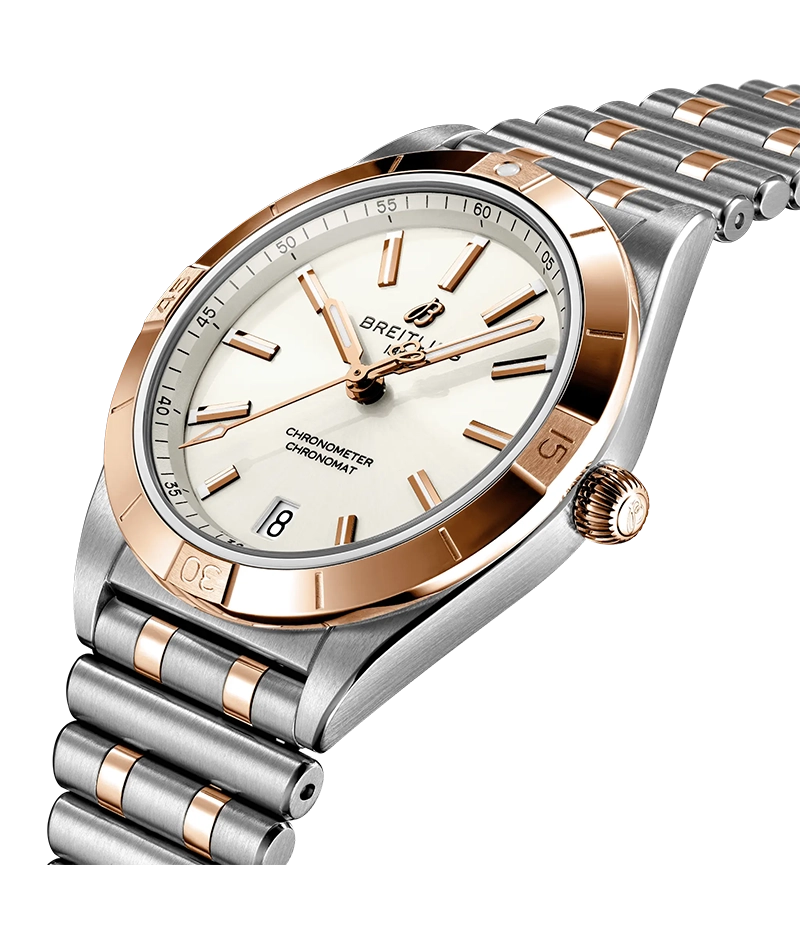 さらにきらめきを求める女性には、ダイヤモンドを埋め込んだベゼルやインデックス、カラフルなダイアルも設定。ブライトリングのアイコニックで着け心地のいいバタフライクラスプ付きの「ルーロー(フランス語で筒状)」ブレスレットを備えたクロノマットオートマチック 36は、COSC認定のクロノメーターのブライトリング「キャリバー10」を搭載しています。