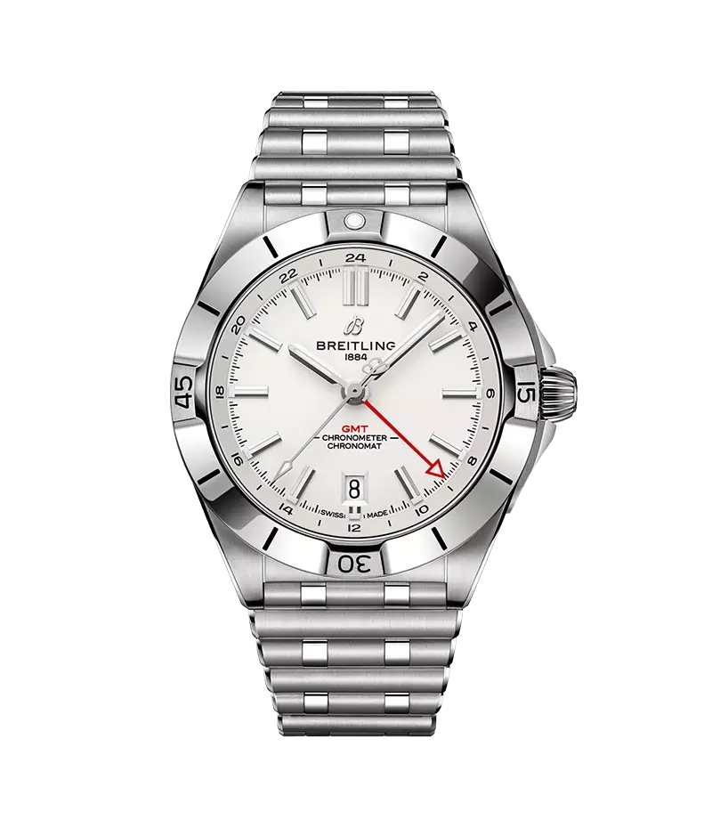 「クロノマット オートマチック GMT 40」は、現代の旅人たちに向けてブライトリングが贈る一本です。 デュアルタイム機能を備えながらも、洗練されたエレガンスを湛え、旅のあらゆるシーンに寄り添う万能なデザインに仕上がっています。ビジネスミーティングの場にも、オフタイムのアクティブな時間にも調和する堅牢性と上質さを兼ね備えた、まさにオールラウンダーな一本です。
