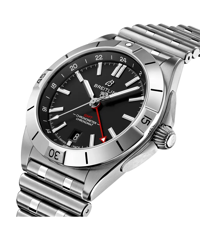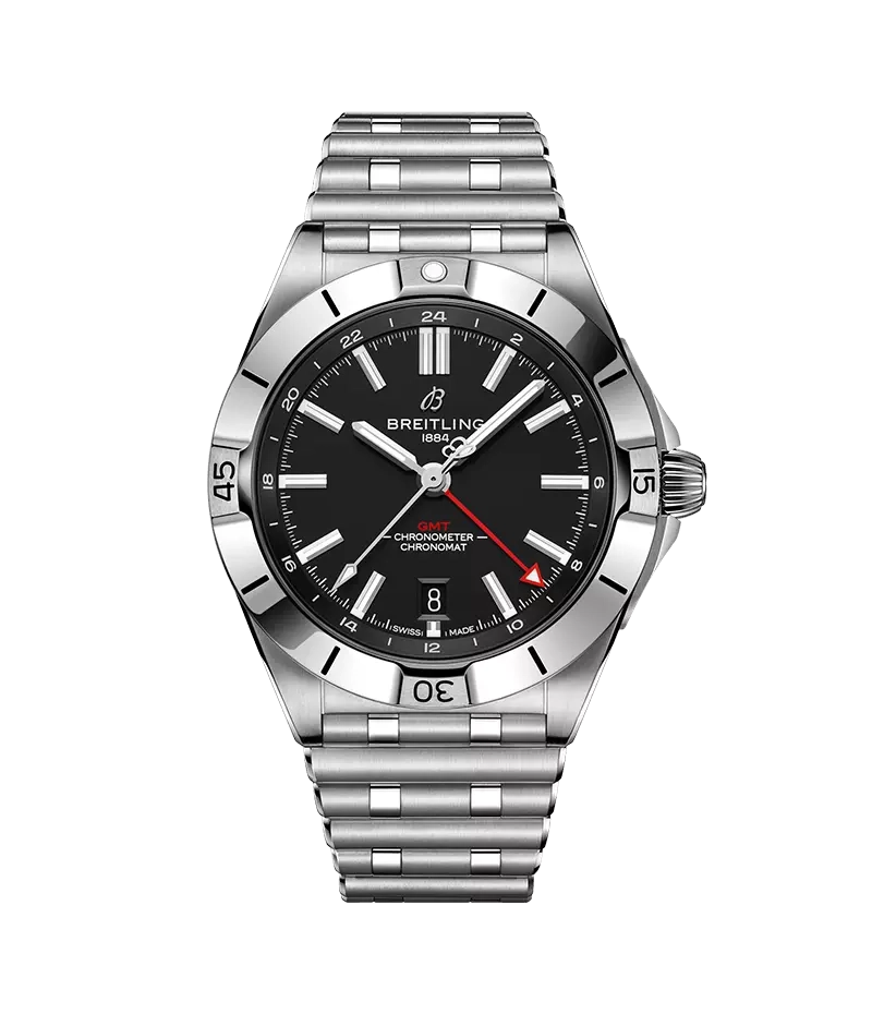 「クロノマット オートマチック GMT 40」は、現代の旅人たちに向けてブライトリングが贈る一本です。 デュアルタイム機能を備えながらも、洗練されたエレガンスを湛え、旅のあらゆるシーンに寄り添う万能なデザインに仕上がっています。ビジネスミーティングの場にも、オフタイムのアクティブな時間にも調和する堅牢性と上質さを兼ね備えた、まさにオールラウンダーな一本です。