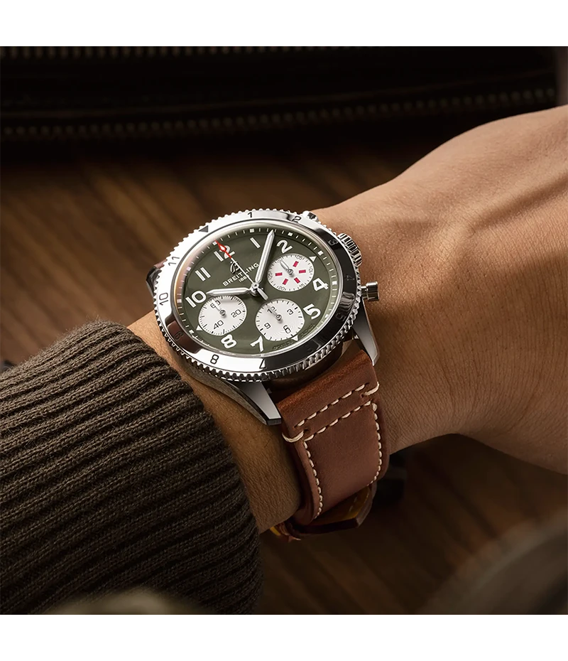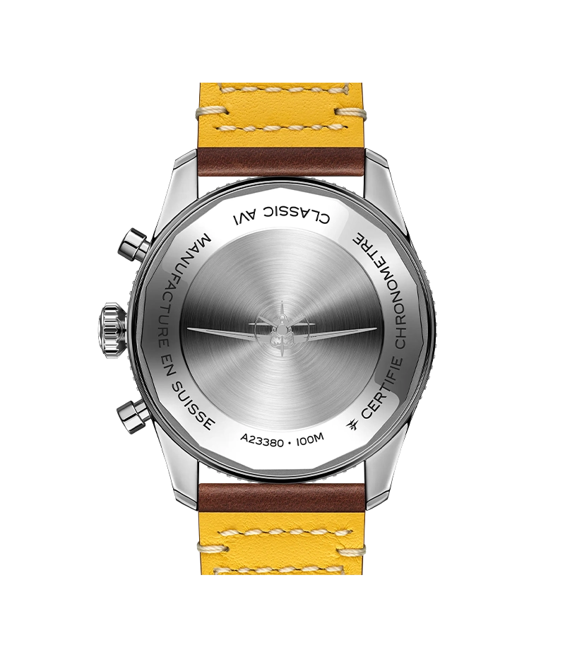 クラシック アヴィを駆動するのはCOSC認定のブライトリング「キャリバー23」ムーブメント。パワーリザーブは約48時間です。