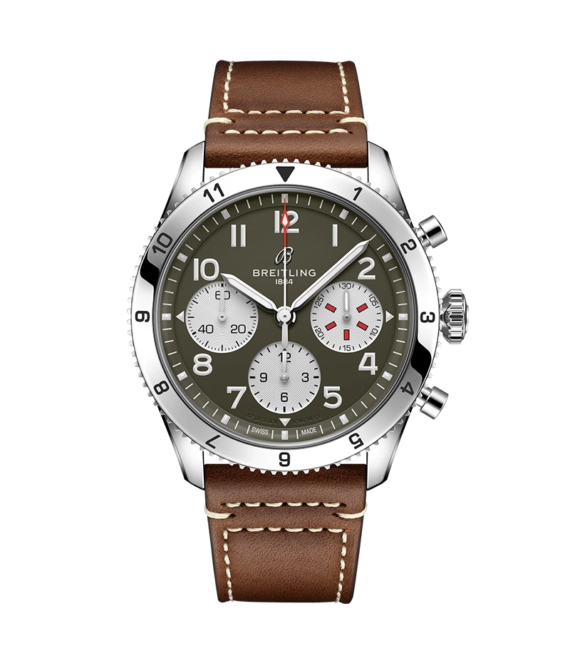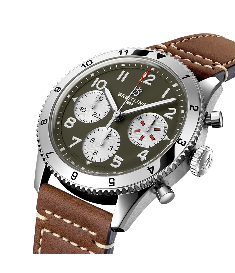 真のパイロットウォッチとして、当時のコックピットの過酷さに耐えられるようデザインされたクラシック アヴィ クロノグラフ 42 カーチス ウォーホークは、ダイヤルとベゼルに大きく読みやすいアラビア数字を採用。 42 mmのケースのベゼルには刻みが付いているので、パイロットが手袋をしたままであっても最適なグリップ感が得られます。