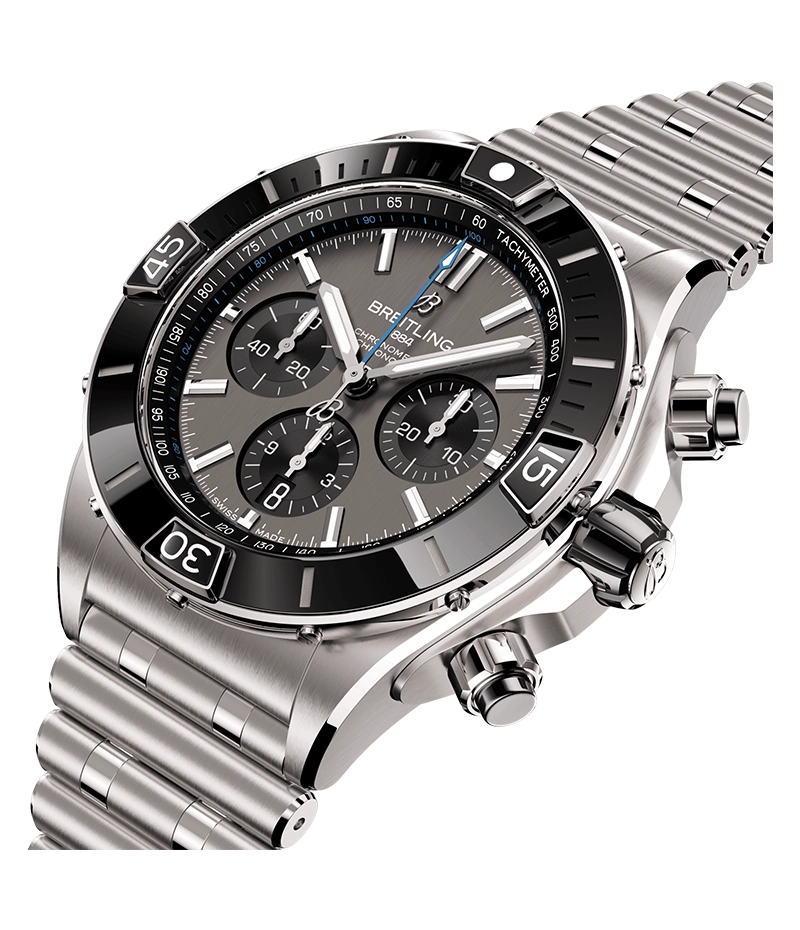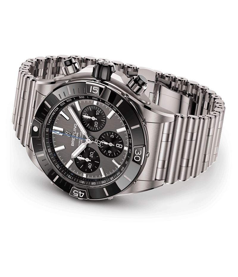 あらゆる活動に適したブライトリングの万能ウォッチ。 「スーパー クロノマット」は、1980年代にブライトリングがイタリア空軍の曲技飛行隊名手のために製作したオリジナルのクロノマットにインスパイアされています。
