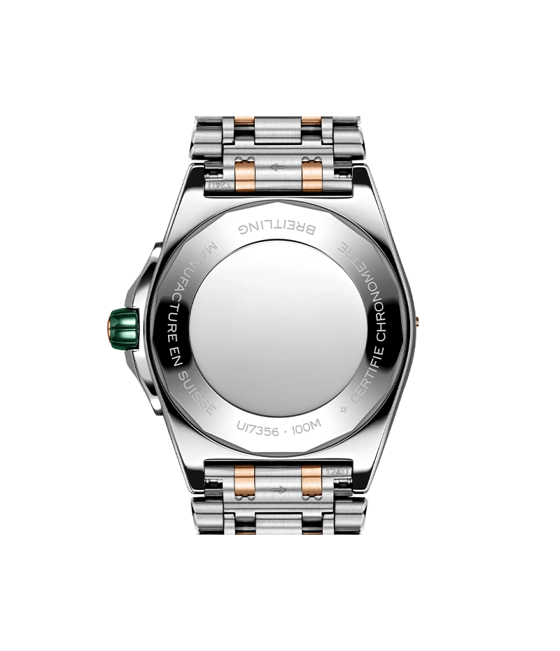 スーパー クロノマット オートマチック 38には、その卓越した存在感と共に輝きを放つ面もあります。大ぶりの「ラボグロウンダイヤモンド」が、18Kレッドゴールド製のベゼルの周りを取り囲み、文字盤の色が程よく目を楽しませてくれます。お気に入りの色合いとブレスレットまたはストラップを組み合わせてください。