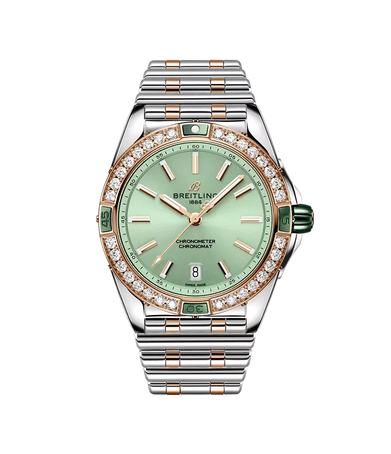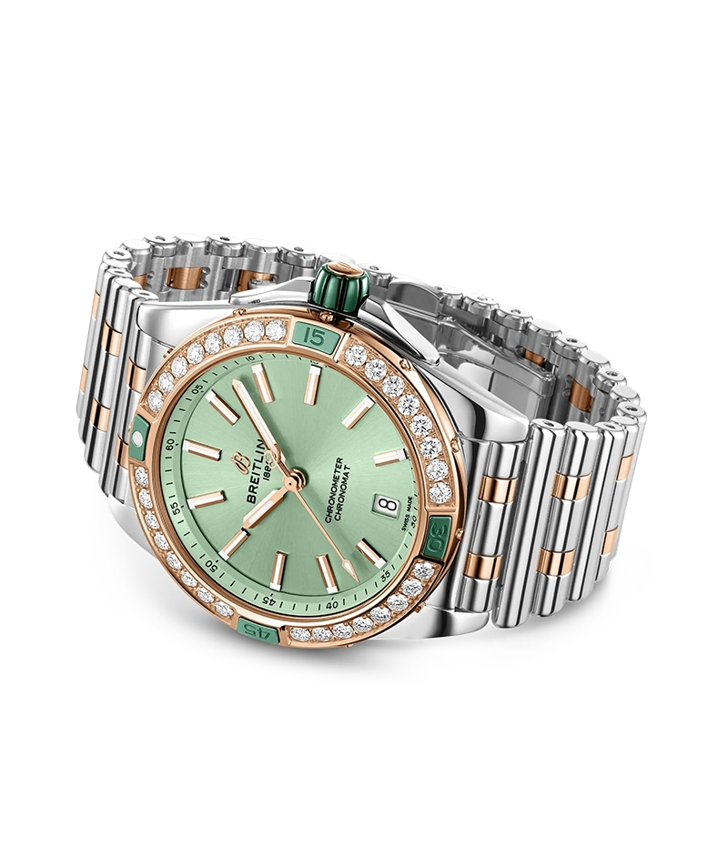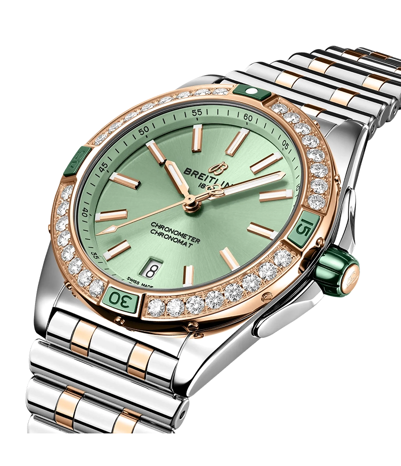 スーパー クロノマット シリーズで初めてダイヤモンドベゼルを備えた、「スーパー クロノマット オートマティック 38」は、スーツに合わせても、Tシャツとジーンズに合わせても、存在感を放つようにデザインされています。