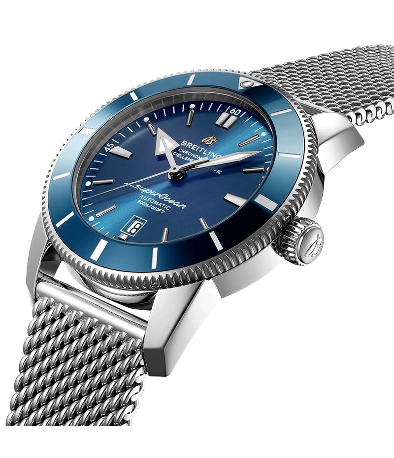 ステンレススチールや18Kレッドゴールドをはじめ、種々の素材とサイズを揃えた「スーパーオーシャン ヘリテージ B20 オートマチック」には、ブラック、ブルー、グリーンのダイヤルがラインナップされます。また、ケースとの組み合わせには、一体感のあるメッシュブレスレット、フォールディングバックル式メッシュラバーストラップから選択が可能です。