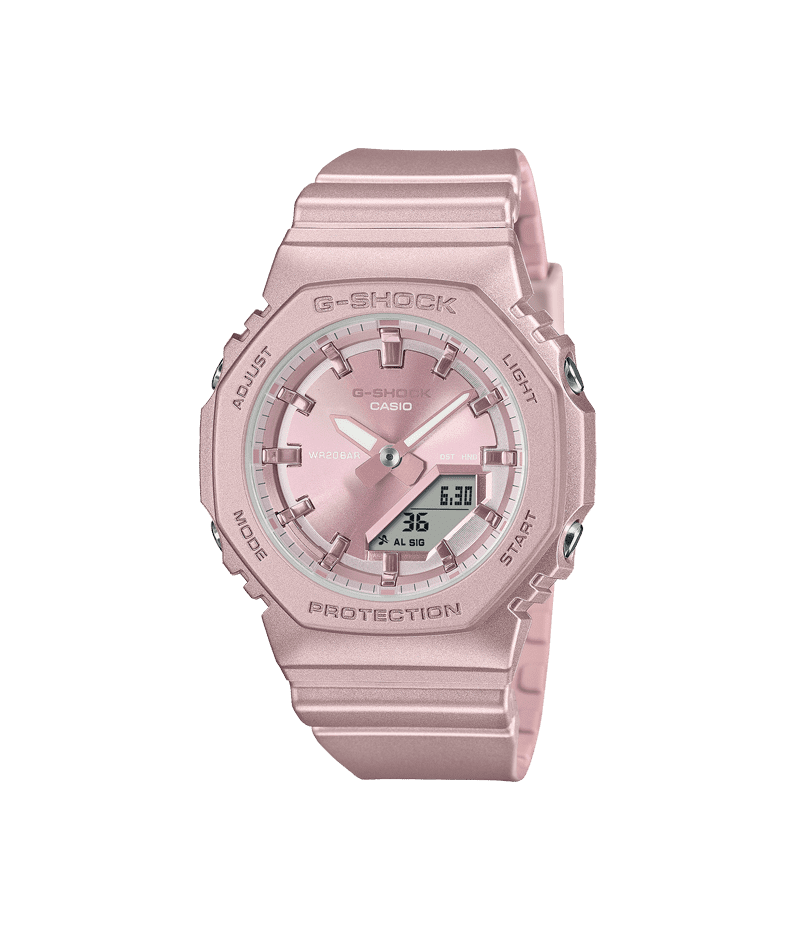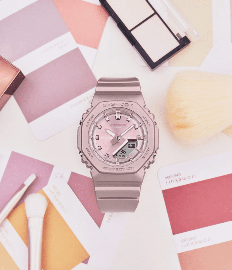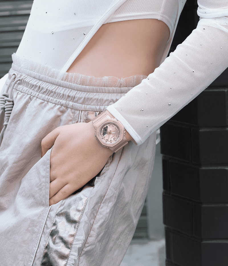 ベゼルとバンドにマット仕上げの偏光パール塗装を、文字板には美しい輝きを放つ艶消しのメタリックカラーをあしらい、ミニマルデザインのシンプルな表情に華やかさをプラスしました。