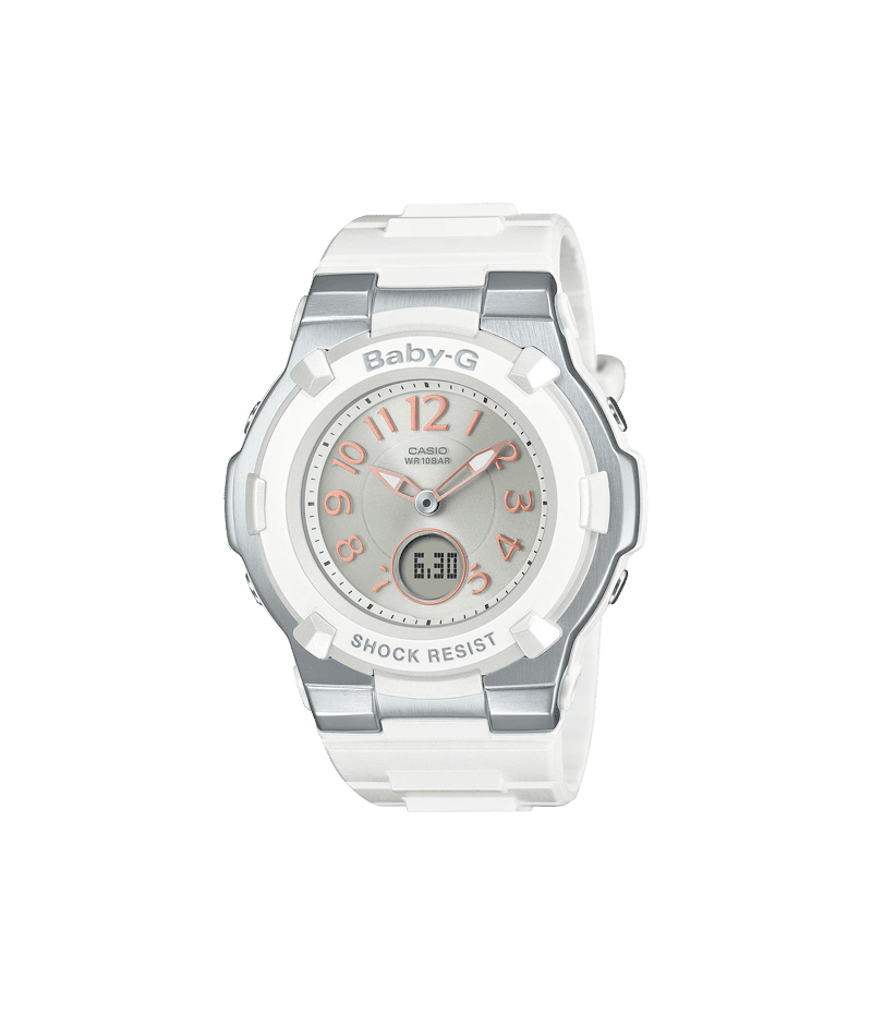 アクティブな女性のためのカジュアルウオッチ、BABY-Gから、肌馴染みが良いニュアンスカラーを纏った電波ソーラーモデルです。