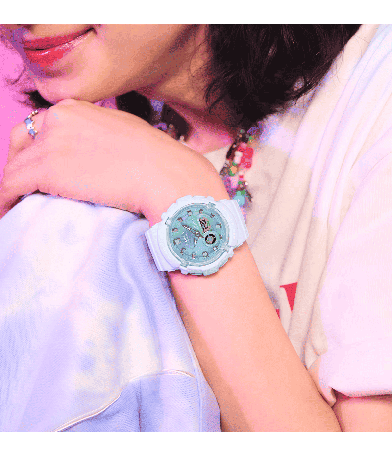アクティブな女性に向けた耐衝撃・カジュアルウオッチBABY- Gから、タイダイデザインがアクセントのモデルです。