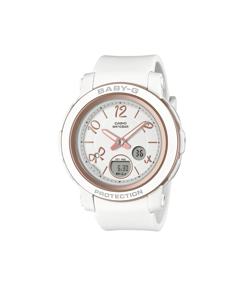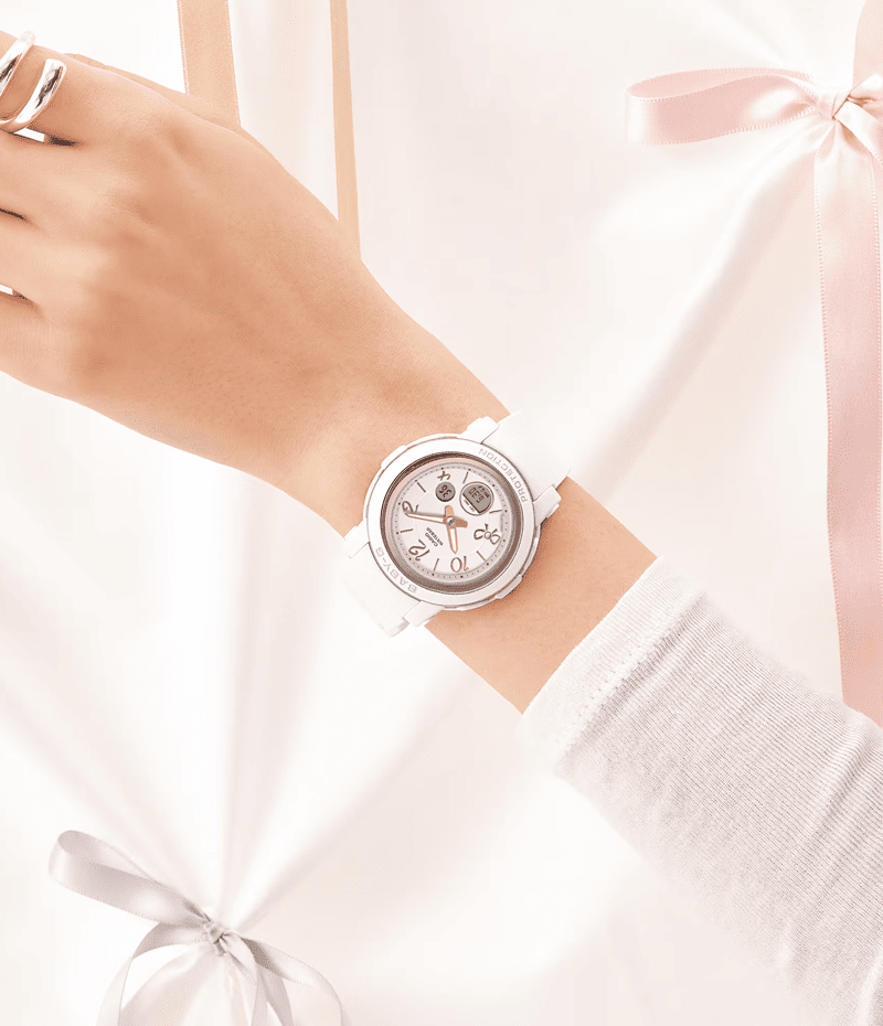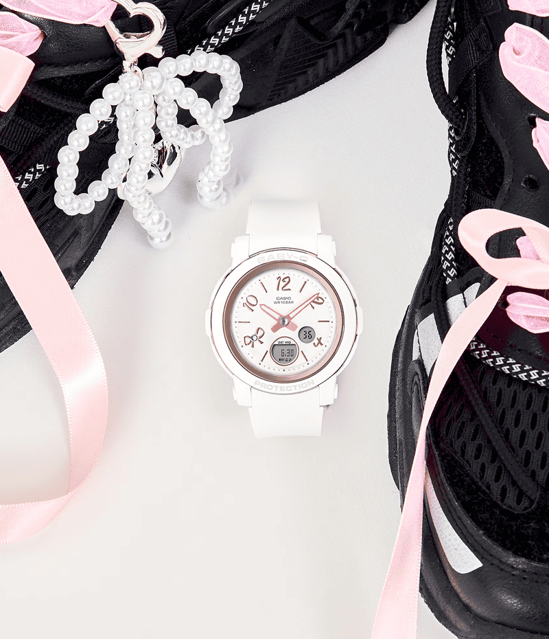 アクティブな女性のためのカジュアルウオッチBABY-Gから、フェミニンなリボンデザインを取り入れたモデルです。
