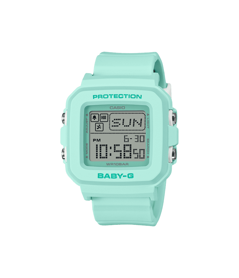 アクティブな女性のためのカジュアルウオッチBABY-Gからスクエアフェイスのデジタルウオッチです。