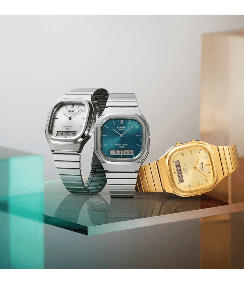 レトロモダンな装いのアナログ・デジタルコンビネーションモデル、AQ-240です。