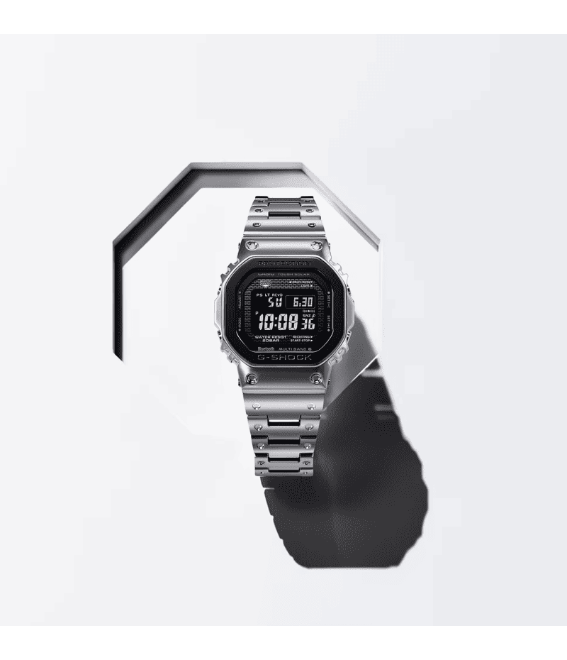 G-SHOCK初代モデル“DW-5000C”の八角形フォルムを受け継ぐGMW-B5000です。 シルバーの中に際立つブラックがG-SHOCKの強さを強調しつつ、幅広いスタイルに合わせやすいモノトーンデザインとなっています。