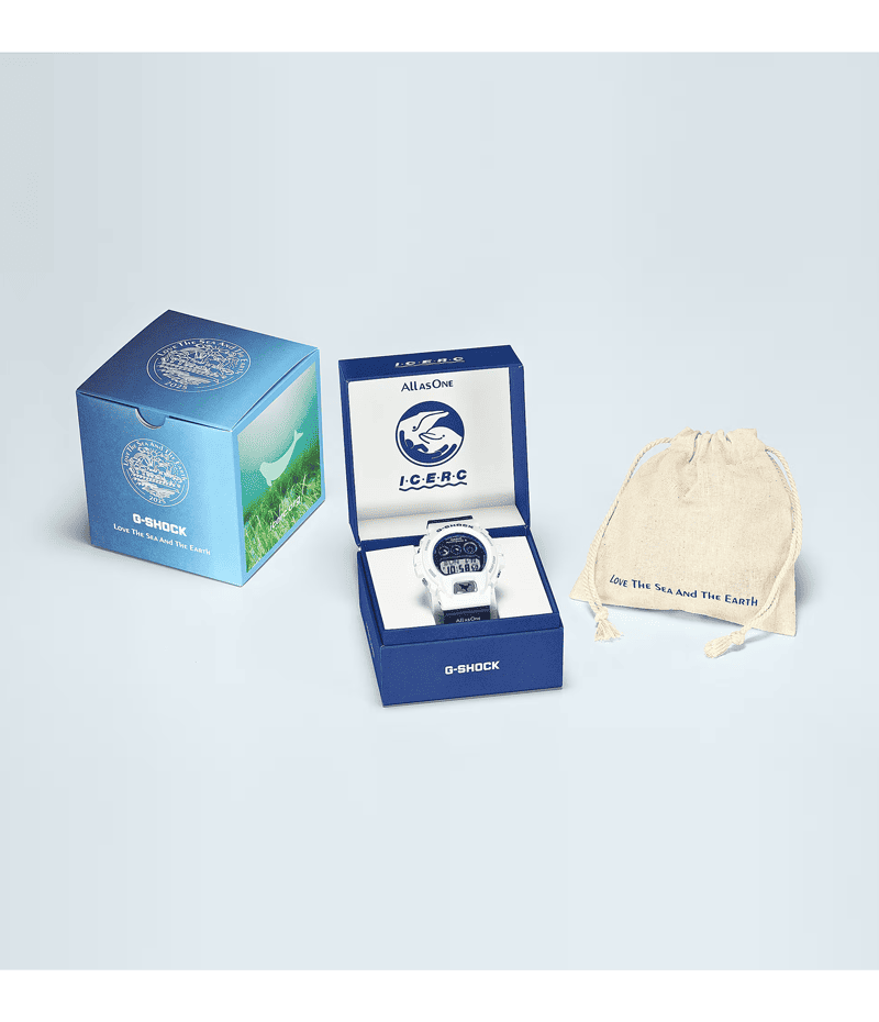 バンドには「ICERC Japan」のロゴをプリントし、裏蓋には「Love The Sea And The Earth」のシンボルマークを刻印しています。また、ベゼル、バンドの主な樹脂パーツには、環境に配慮しバイオマスプラスチックを使用しています。