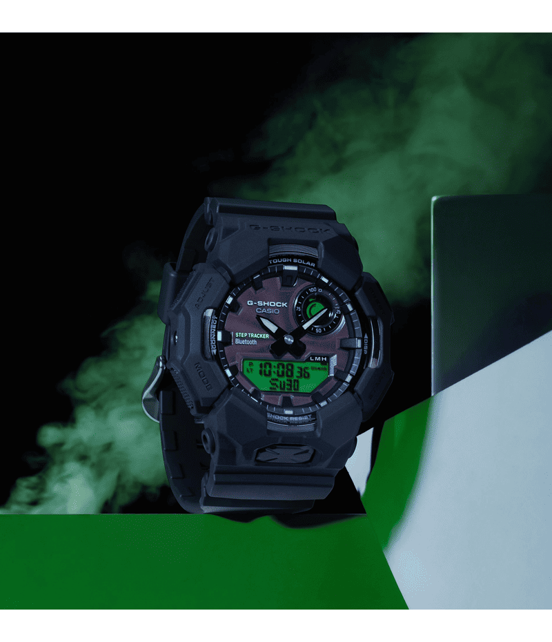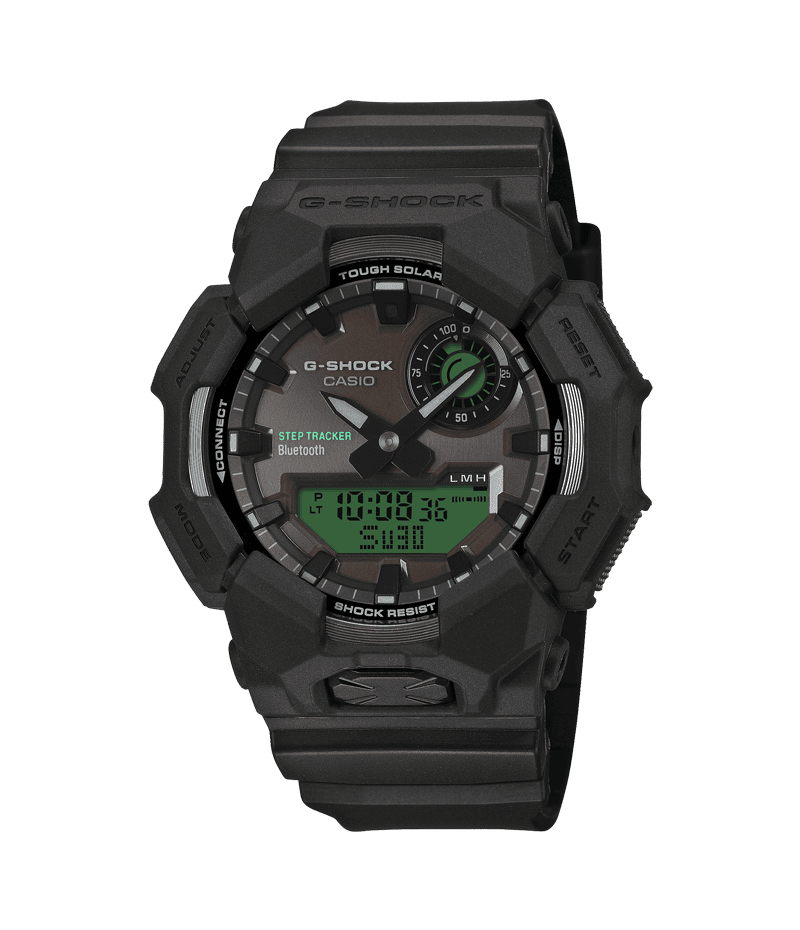 ベゼル・バンド・文字板にブランドの基調色であるブラックを採用し、フェイスの液晶部分にはエレクトログリーンのカラー印刷を施すことで視覚的なアクセントとデザイン性を高めました。
