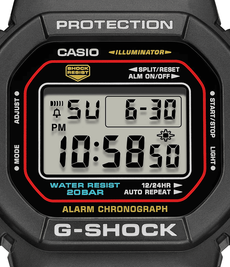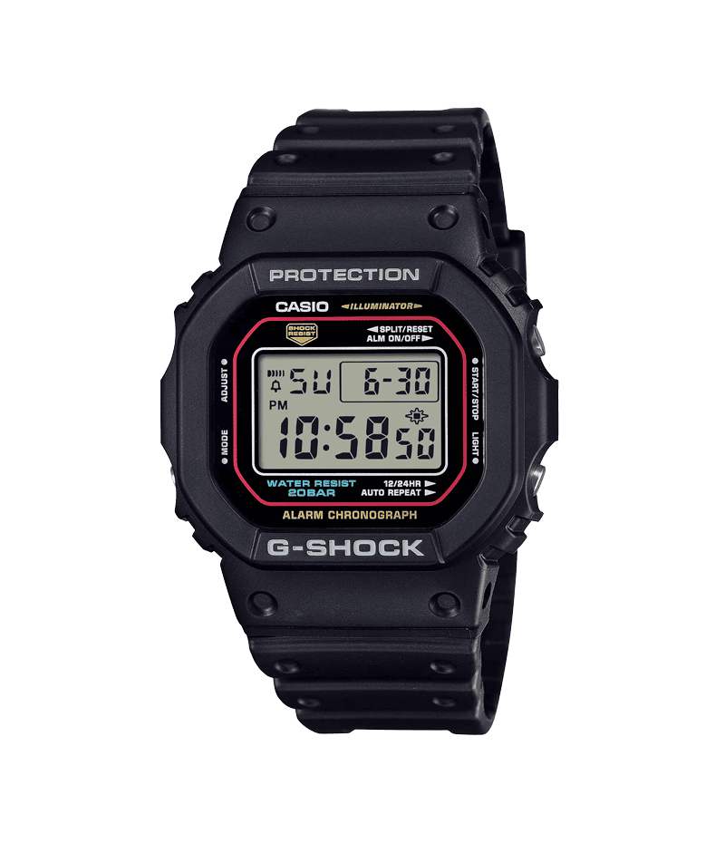 時代と共に進化し続け、世界中のファッショニスタやアスリートから愛されているIconic Stylesに初代G-SHOCKカラーを採用したモデルです。G-SHOCKのブランドカラーでもあり挑戦し続ける情熱を意味する赤色、高い防水性を表す青色、ショックレジスタントを意味する黄色をフェイスに配色し、オリジナルモデルのカラーを忠実に再現しています。