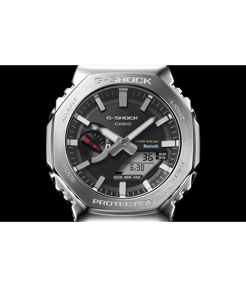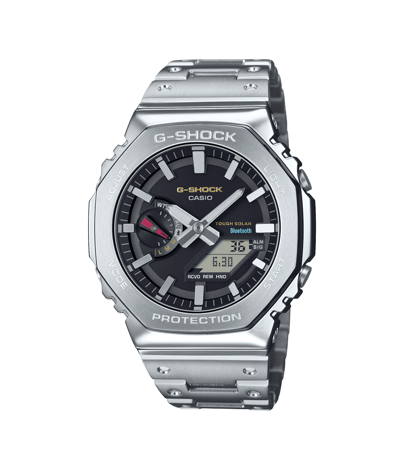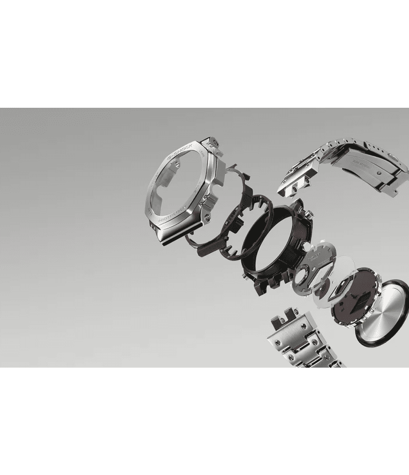 1983年に誕生したG-SHOCK初代モデル“DW-5000C”のダイアルカラーを纏ったフルメタルモデルです。