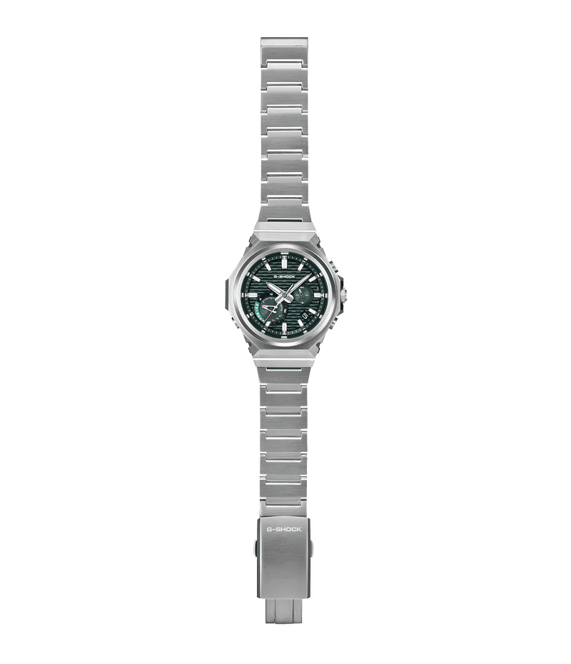 ロゴを排したベゼルは光の角度で表情を変え豊かな質感を演出。ステンレススチール製のバンドにはヘアライン仕上げとミラー仕上げを施し、三つ折れ式中留は端正なデザインとホールドが魅力です。 G-SHOCK初号機“DW-5000C”から継承したベゼルデザインやレンガパターンが、スポーティさも加えています。