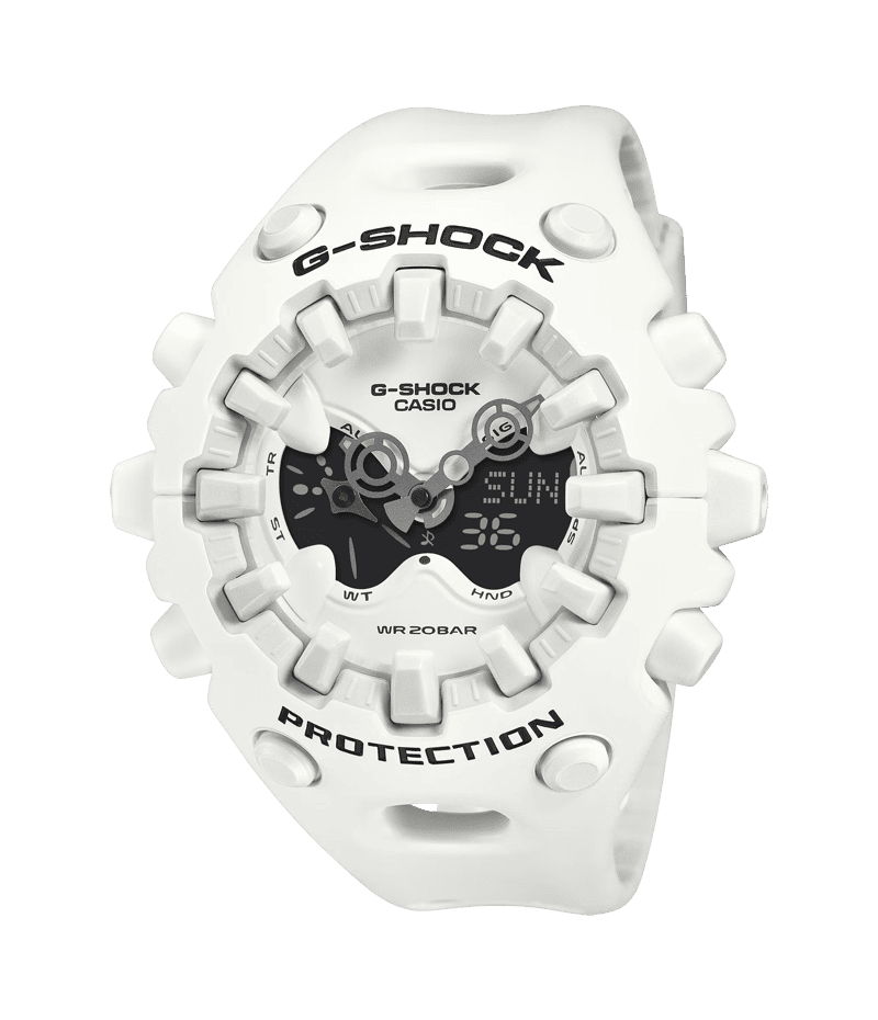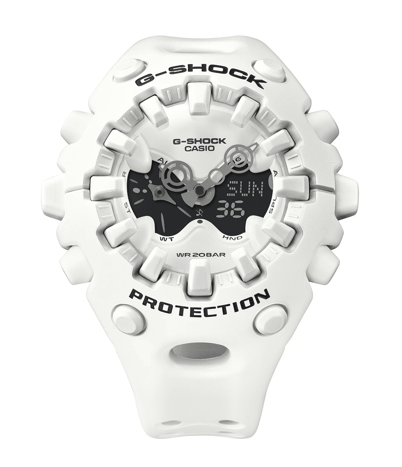 タフネスを追求し進化を続けるG-SHOCKから、エッジの効いたパーツを組み合わせたフォルム、大型全面液晶、ショックリリース針など斬新な発想でG-SHOCKのアイデンティティである「強さ」を形にしたモデルです。