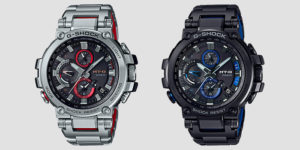 今回のモデルでは、メタル、樹脂に加えカーボン素材を活用し、一体構造のカーボンモノコックケースでモジュールを保護、外側をメタルパーツで覆った「デュアルコアガード構造」を新開発。更なる耐衝撃構造を追求しています。また、バンド構造には、中空のムク駒にファインレジンのパーツを組み込む「新レイヤーコンポジットバンド」を新たに採用したことで、メタルの質感を向上しつつも、既存モデルと比較して15%の軽量化に成功。更にメタルフレームにスライドレバー構造を搭載したことで、バンド交換可能な新設計になっています。