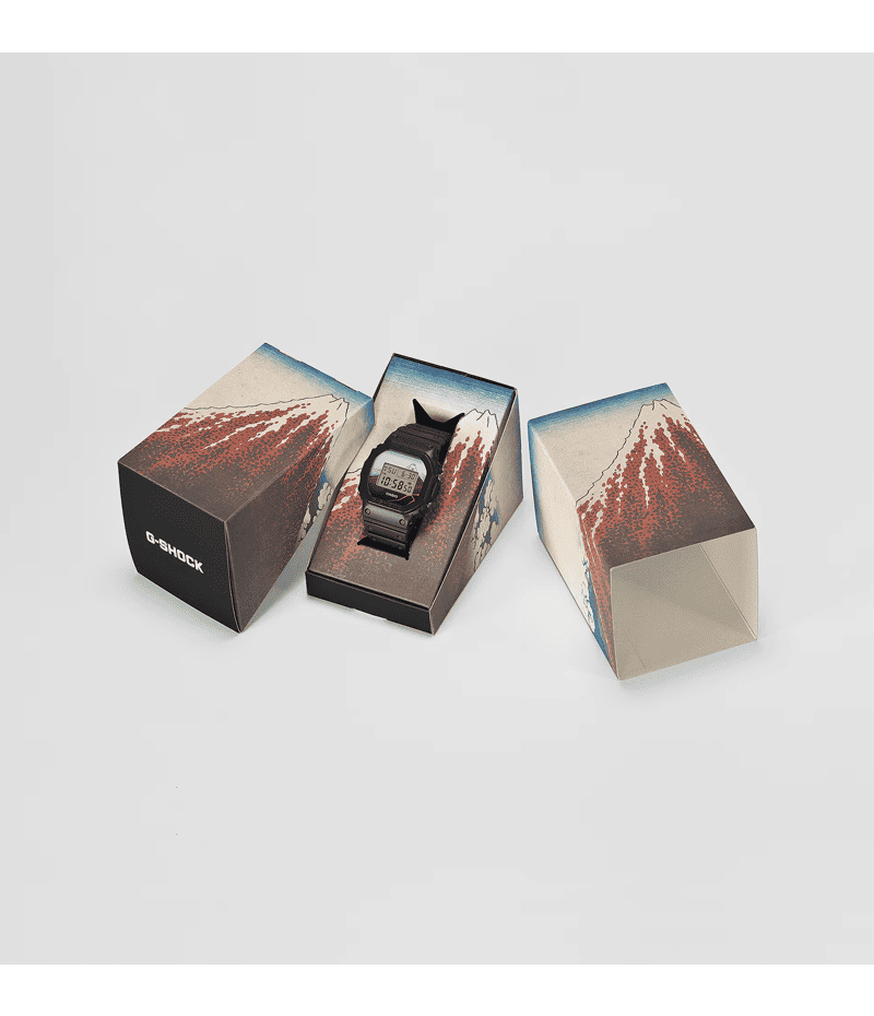 1983年の発売以来、飽くなき強さを求めて進化を続けるタフネスウオッチG-SHOCKから、江戸時代に活躍し国内外で広く知られている浮世絵画家、葛飾北斎の人気作品をデザインモチーフにしたモデルです。