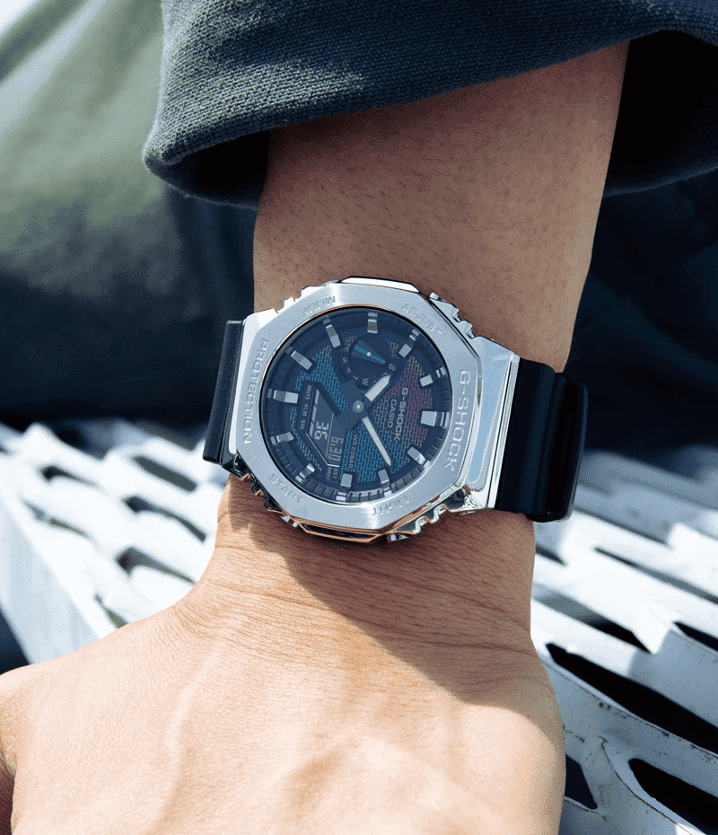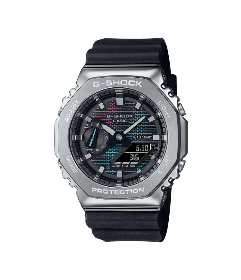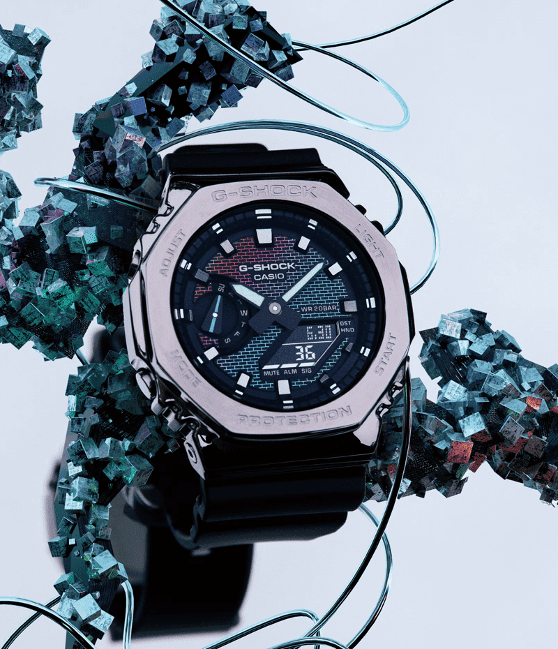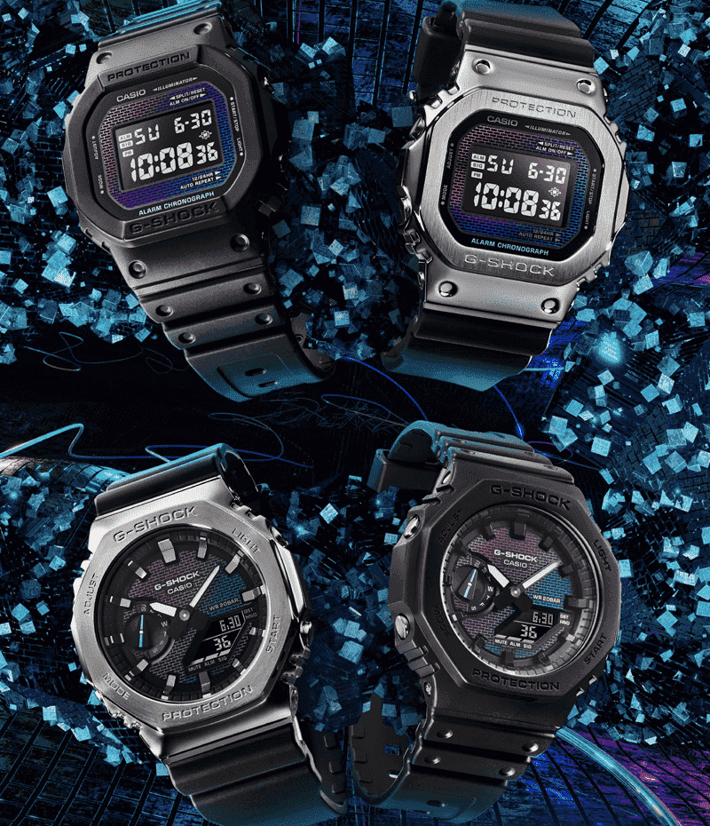 1983年の発売以来、飽くなき強さを求めて進化を続けるタフネスウオッチG-SHOCKから、文字板に蒸着を施したRainbow Brick Wall seriesです。