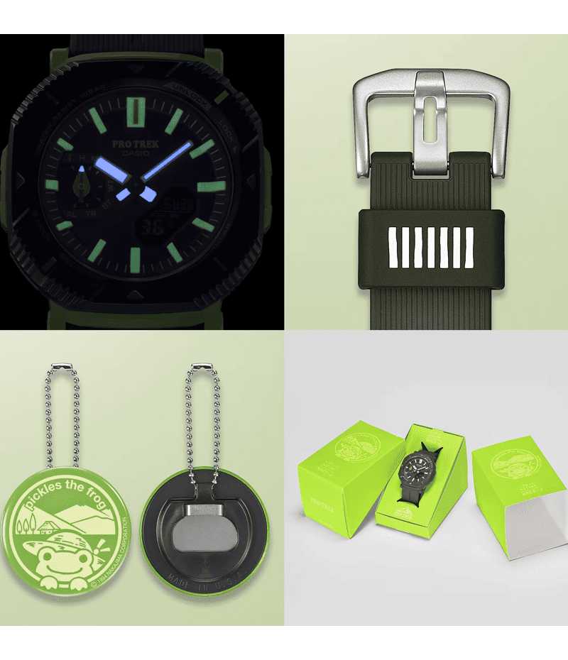 「PRO TREK」「日本自然保護協会」「かえるのピクルス」によるトリプルコラボレーションモデルです。