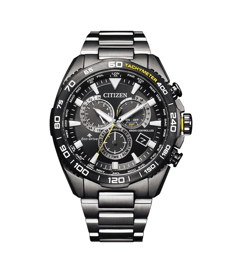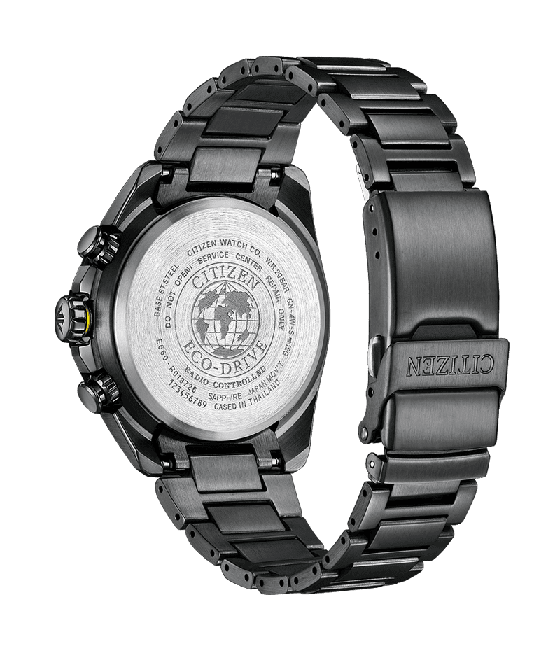 モータースポーツからインスピレーションを受けたアクティブなデザインを持った「エコ・ドライブ電波時計」。