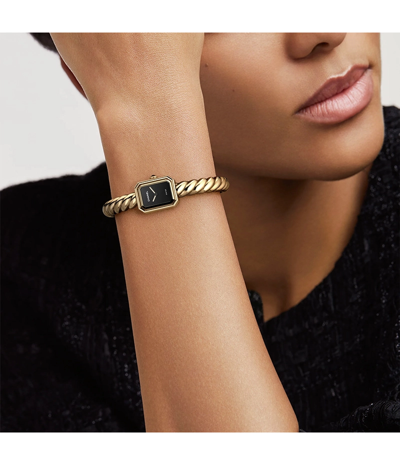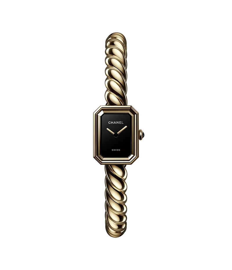 オリジナルのPREMIÈREを象徴するブラックとゴールドのカラーで彩られた八角形のケースには、新たに18Kイエローゴールドのバングルブレスレットが組み合わされています。このソリッドゴールドのツイストバングルは、PREMIÈREウォッチにとって欠かせないファッショの世界からインスピレーションを得ています。その名前が「プルミエール・ダトリエ(アトリエの主任)」を彷彿とさせるのも納得でしょう。