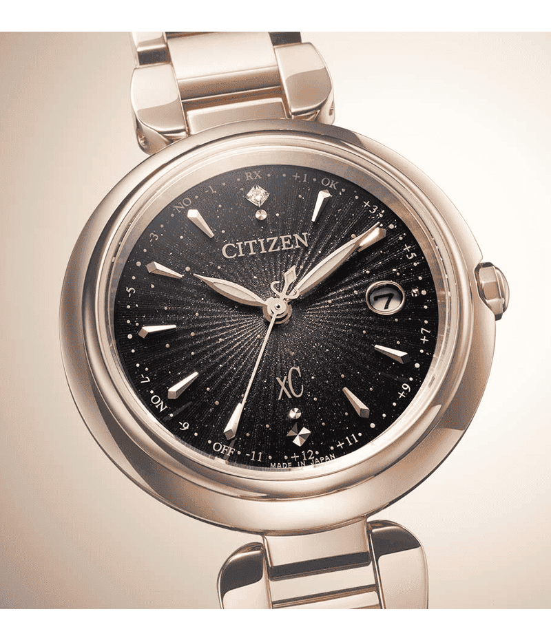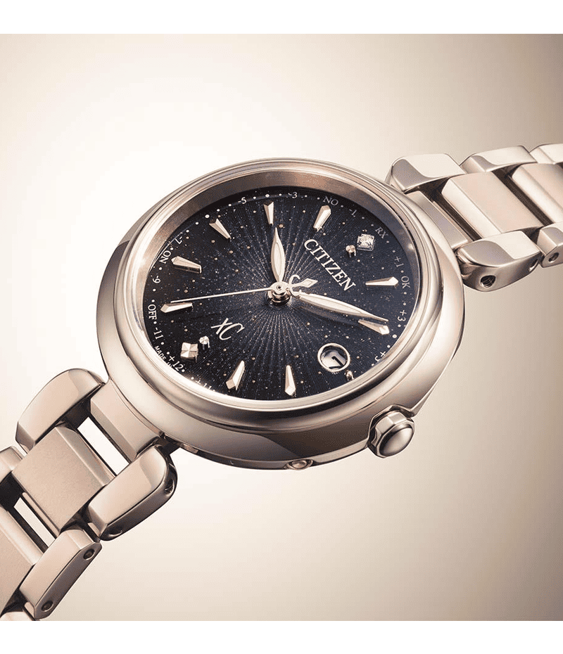 文字板には、ゴールドパールとゴールドプリント、多色のインクジェットプリントを重ね、奥行き感のある幻想的な仕上がりに。インデックスは、放射状に広がる光をイメージしたカットパーツを採用し、12時の位置で輝く1ポイントのラボグロウン・ダイヤモンドが上品で華やかな輝きを添えます。