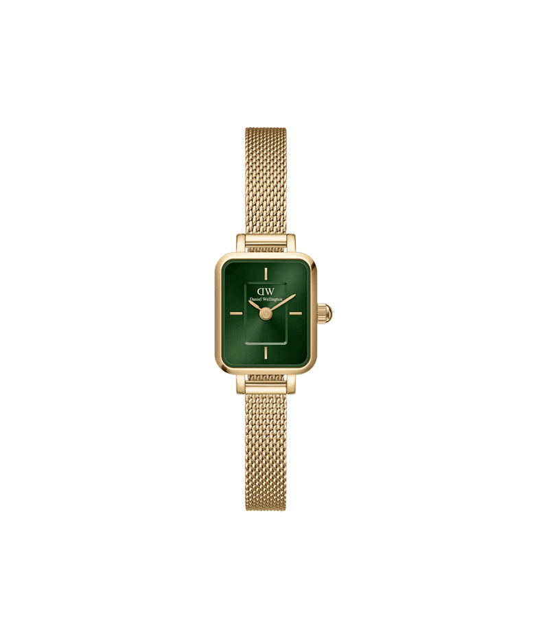 時計とジュエリーの中間点を目指してデザインされたQuadro Miniは、多くのことを伝えてくれるでしょう。エメラルドのコンパクトなQuadro文字盤に、洗練されたサンレイ仕上げを施し、2つのインデックスマーカーでミニマルな外観を演出した、これまでで最小の時計です。 織物のようなメッシュのブレスレットは、エレガントなブレスレットの繊細な魅力がありますが、交換可能であるため、さらに多様な使い方ができるようになっています。当社の他の時計と同様に、このタイムピースも耐久性の高い316Lステンレススチール製で、ゴールドの高品質なメッキが施されています。時計として身につけ、極上のジュエリーとして愛用してください!