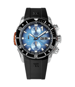 パワーボートレースのタフでダイナミックな世界観を表現した、機能性と防水性に優れたダイバーズウォッチ。腕に沿うように設計されたラグ、エッジの効いたシャープなフォルム、ラグジュアリースポーツウォッチと呼ぶにふさわしい装飾が施されています。