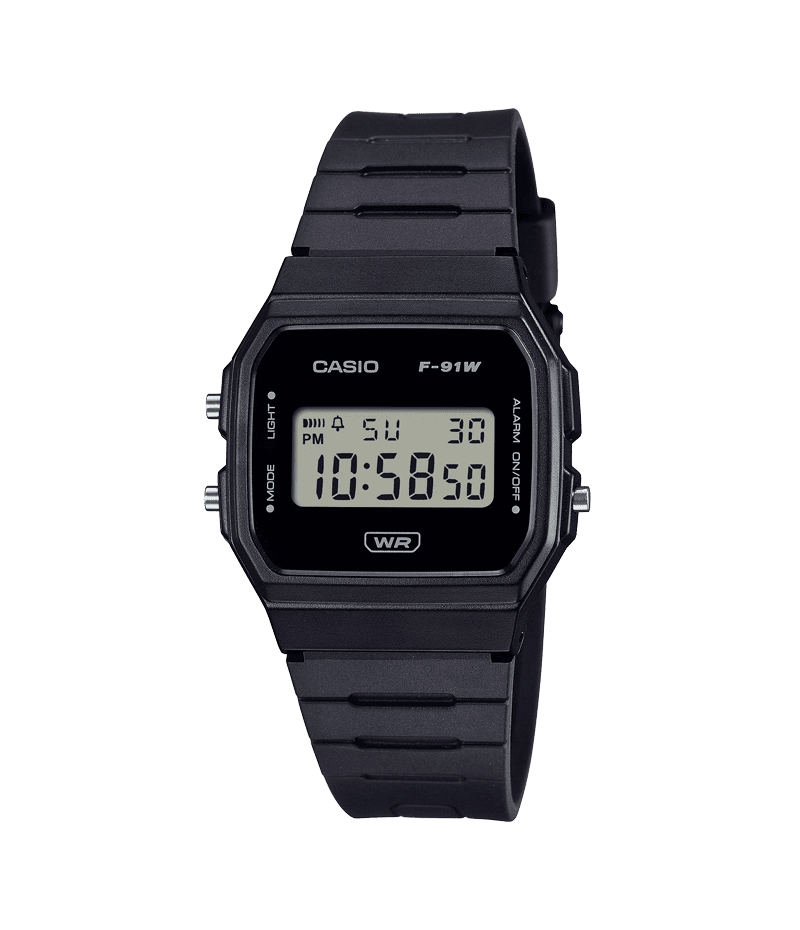 軽量・薄型のデジタル液晶モデルF-91を、機能表記の少ないミニマルなフェイスデザインに仕上げました。ワントーンカラーがシンプル・クリーンな印象です。