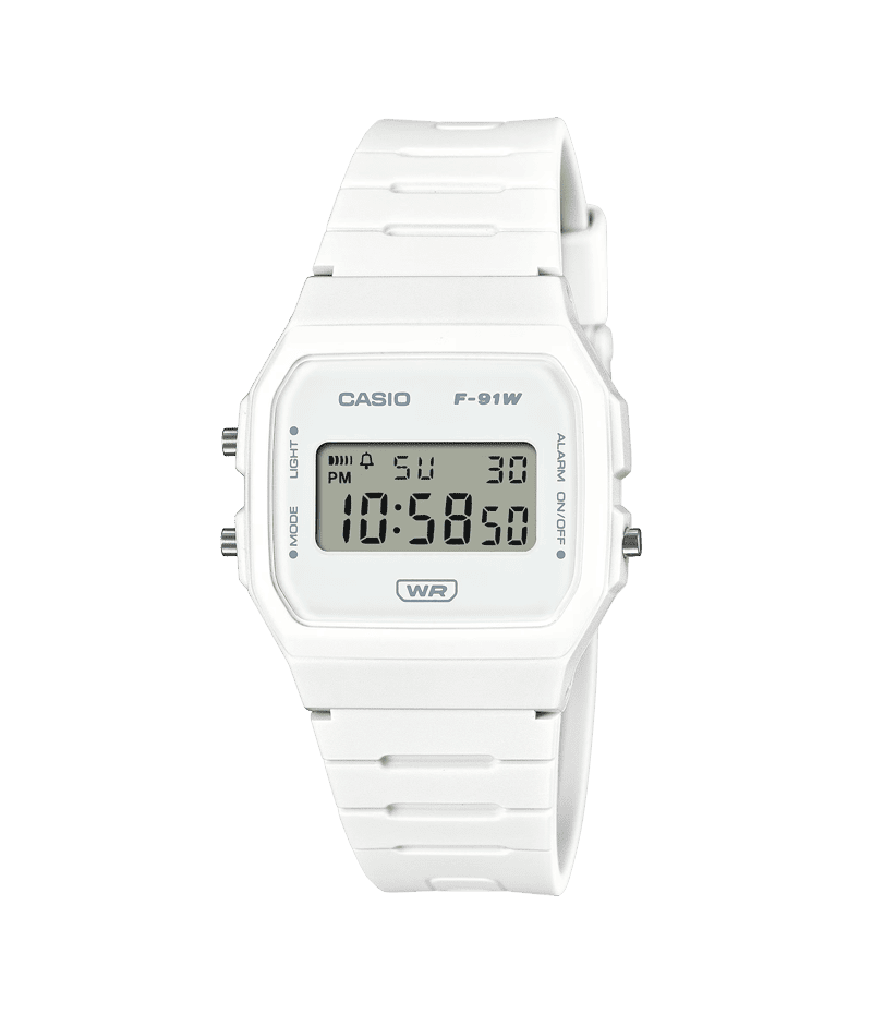 軽量・薄型のデジタル液晶モデルF-91を、機能表記の少ないミニマルなフェイスデザインに仕上げました。ワントーンカラーがシンプル・クリーンな印象です。