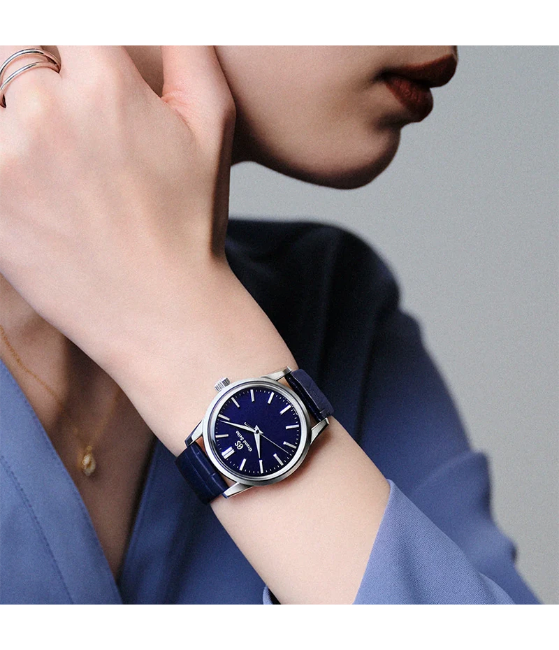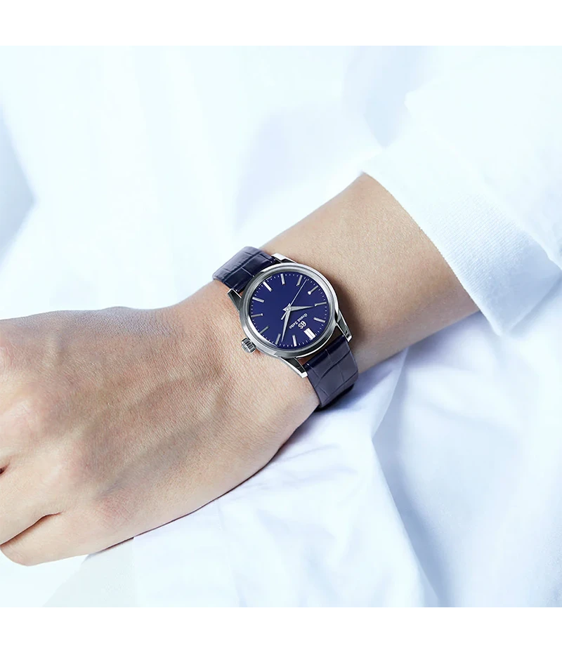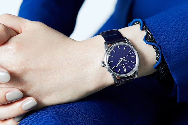 グランドセイコー専用のクオーツムーブメント「キャリバー9F61」を搭載した、34mmのミドルサイズケースは、男性がつけても女性がつけても、つける人の個性を引き立てます。