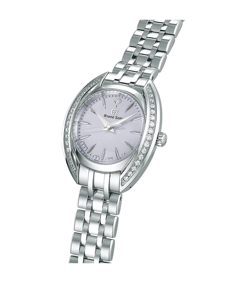 ダイヤモンドの回りのケース部分にグランドセイコーならではの研磨を施し、歪みない金属の鏡面とシャープなラインがダイヤモンドと完璧に調和します。熟練した職人による匠の技で、貴石を傷つけず平滑に磨き上げています。