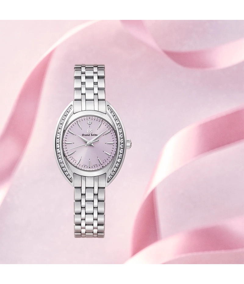 ダイヤルカラーには日本の伝統色である「淡藤色」を採用。藤色は平安時代から女性に人気の色で、染色技術が発達した江戸時代には「藤」の名を冠する多くの派生色が生まれたと言われています。優しく女性らしい「藤色」をさらに淡くした「淡藤色」のダイヤルが、12 時位置に配置されたワンポイントのダイヤモンドの輝きをより一層引き立て、女性の腕元を華やかに演出します。