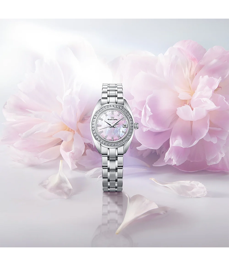 グランドセイコーのクオーツ時計の製造拠点でもある長野県が、全国一の生産量を誇る花「芍薬(しゃくやく)」をデザインモチーフにした、ケース幅26mmの小ぶりなサイズのクオーツモデルです。