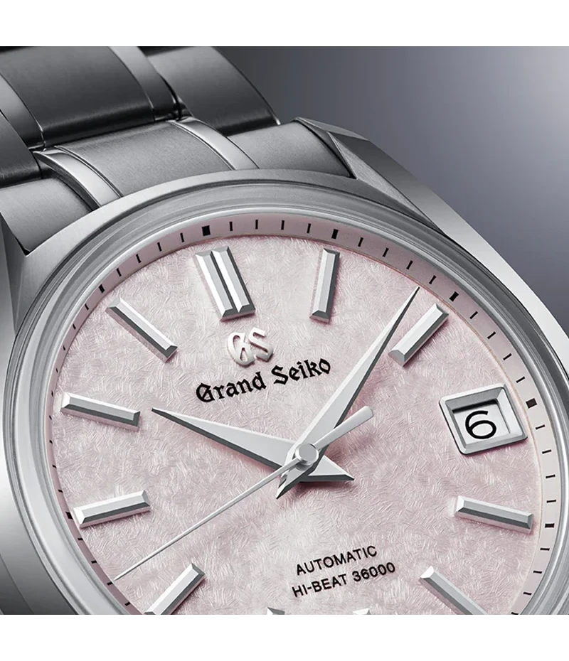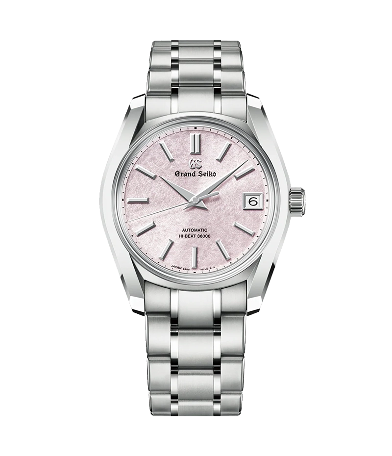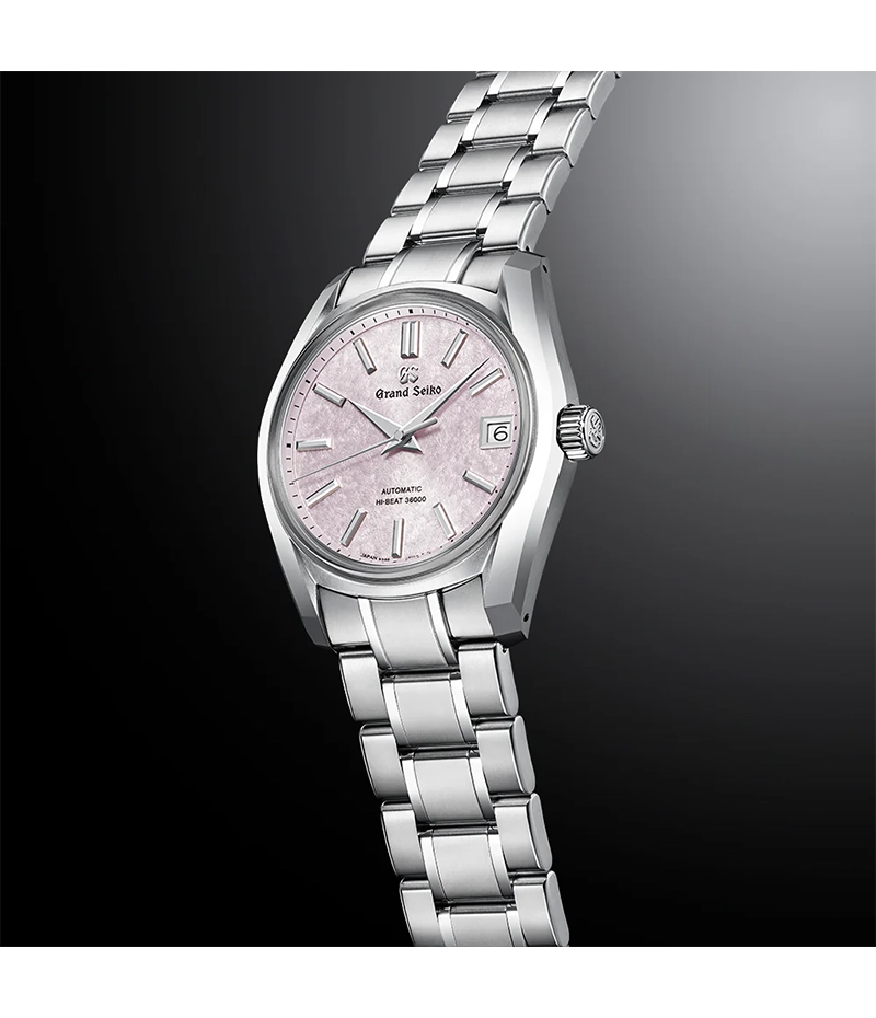 1967年に発売されたグランドセイコー史上初の自動巻メカニカルモデル「62GS」のデザインを現代的にアレンジし、日本特有の季節の移ろいをダイヤルに宿したモデルです。ケースとブレスレットには通常のチタンよりも傷つきにくく、白く美しいブライトチタンを採用し、心地よい装着感を創出しています。