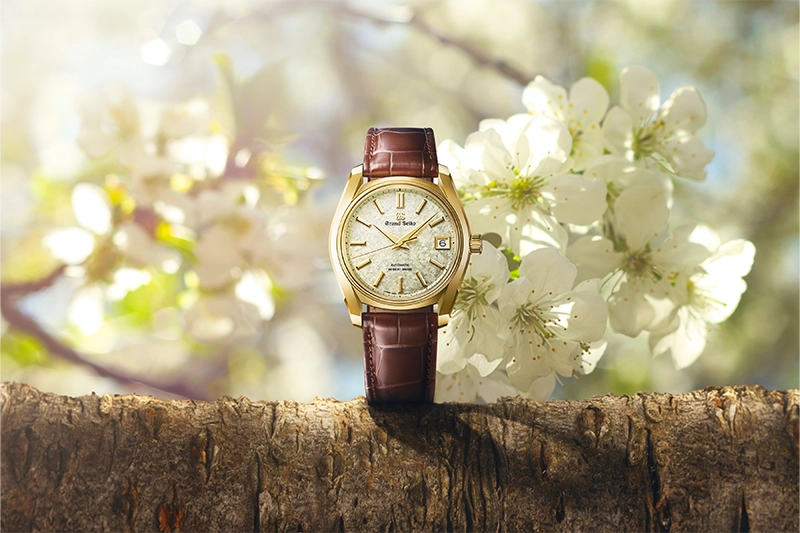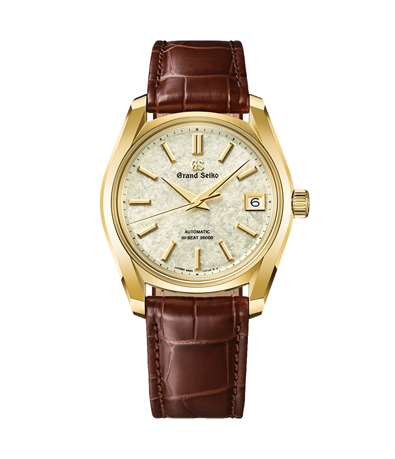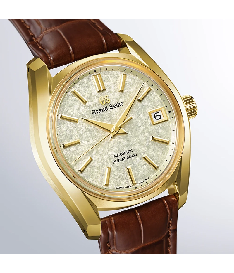 グランドセイコー初の自動巻メカニカルモデル「62GS」を現代的解釈によってアレンジし、日本特有の季節の移ろいをダイヤルに宿したモデル。ヘリテージコレクション「62GS」レギュラーモデルでは初となる18Kイエローゴールドのケースを採用しました。